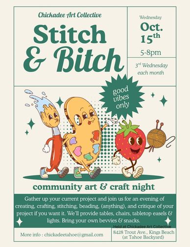Join Chickadee Art Collective in the shop on the evening of October 15th from 5-8pm (come for 20 min or stay for as long as you'd like), and let's get crafty together! Gather up your current project and come spend some time creating together. I don't know about you, but I could really use some kindred creator spirits right now.